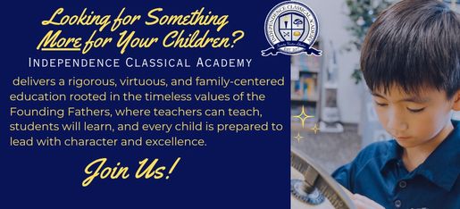 Independence Classical Academy exists to provide a disciplined and highly engaging learning environment rich in scholarship, character building, citizenship, moral virtue, civics, and liberal arts. This time-tested, classical liberal arts education will ensure students are highly prepared, through rigorous and relevant core content with an emphasis on literacy, to be highly productive and successful citizens with a strong sense of character and civic responsibility.